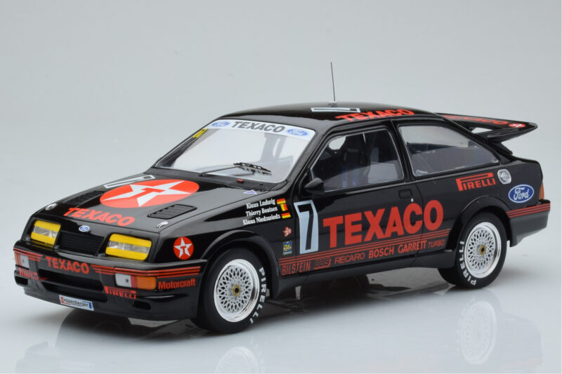 The Ford Sierra RS500 Cosworth Texaco #7 K. Ludwig / K. Niedzwiedz / T. Boutsen 24 Hours of Spa 1987 IXO 1:18 is crafted from Metall. Die-cast zinc alloy body with detailed plastic parts, rubber tires, and high-quality paint finish. Die-cast models are known for their weight, durability, and realistic feel.