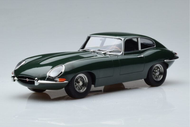 The Jaguar E-Type Series 1 British Racing Grön KK-Scale 1:18 is crafted from Metall. Die-cast zinc alloy body with detailed plastic parts, rubber tires, and high-quality paint finish. Die-cast models are known for their weight, durability, and realistic feel.