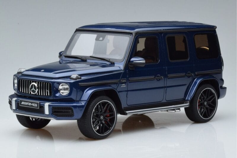 The Mercedes AMG G63 W464 Blå GT Spirit 1:18 is crafted from Resin. High-quality resin with hand-painted details and limited production runs. Resin models offer exceptional detail and are prized by serious collectors for their craftsmanship.