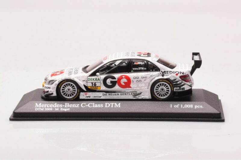 The Mercedes C-Class W204 DTM GQ AMG Mercedes #16 Engels DTM 2009 Minichamps 1:43 is crafted from Metall. Die-cast zinc alloy body with detailed plastic parts, rubber tires, and high-quality paint finish. Die-cast models are known for their weight, durability, and realistic feel.