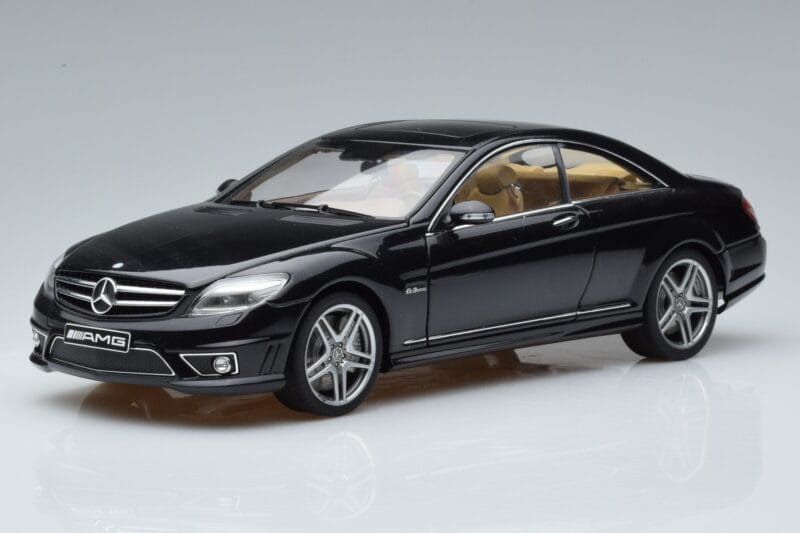 The Mercedes CL63 AMG C216 Svart AUTOart 1:18 is crafted from Metall. Die-cast zinc alloy body with detailed plastic parts, rubber tires, and high-quality paint finish. Die-cast models are known for their weight, durability, and realistic feel.