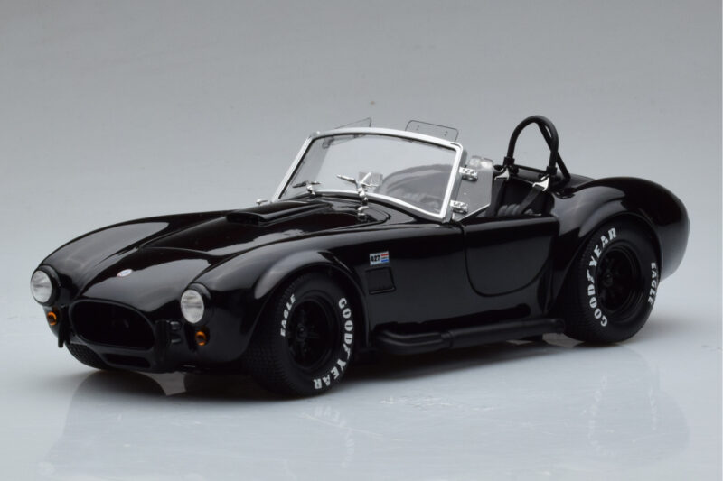 The Shelby Cobra 427 S/C Svart Kyosho 1:18 is crafted from Metall. Die-cast zinc alloy body with detailed plastic parts, rubber tires, and high-quality paint finish. Die-cast models are known for their weight, durability, and realistic feel.